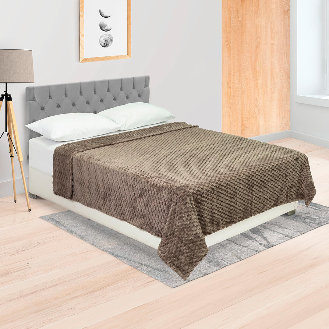 Cubrelecho Estampado Prensado Doble Faz Flujo de Color Gris