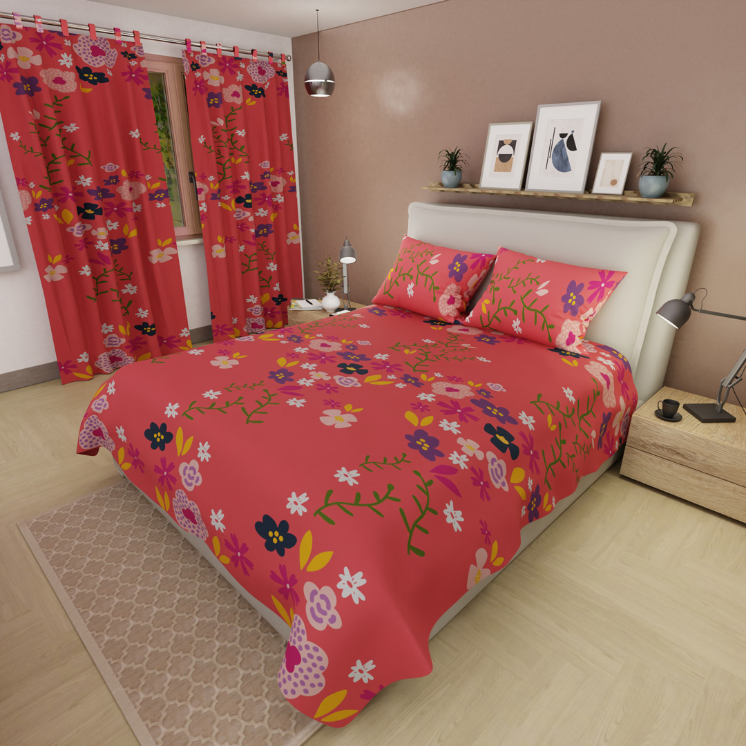 Juego De Sábanas Con Cortinas Ramillete de Colores En Salmón