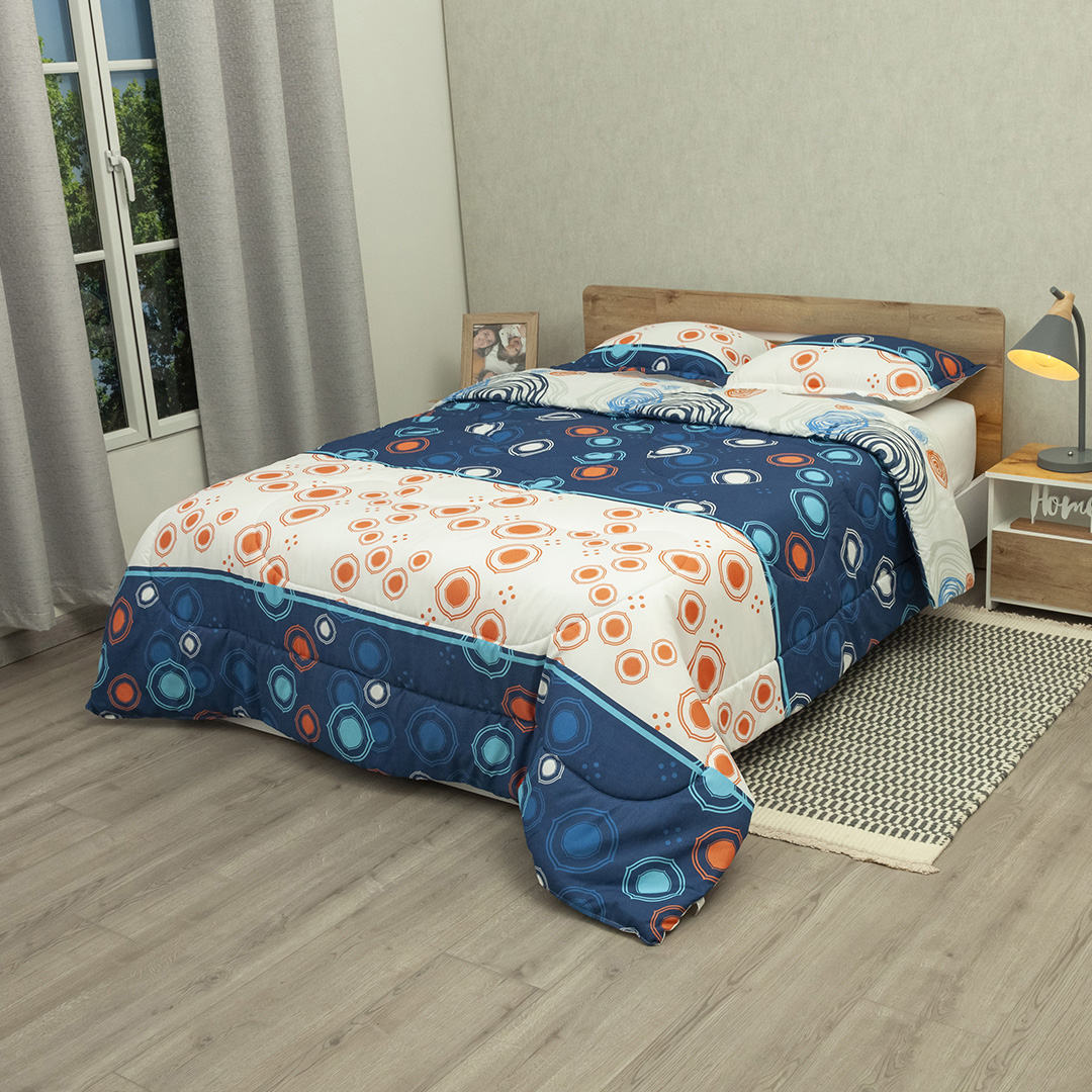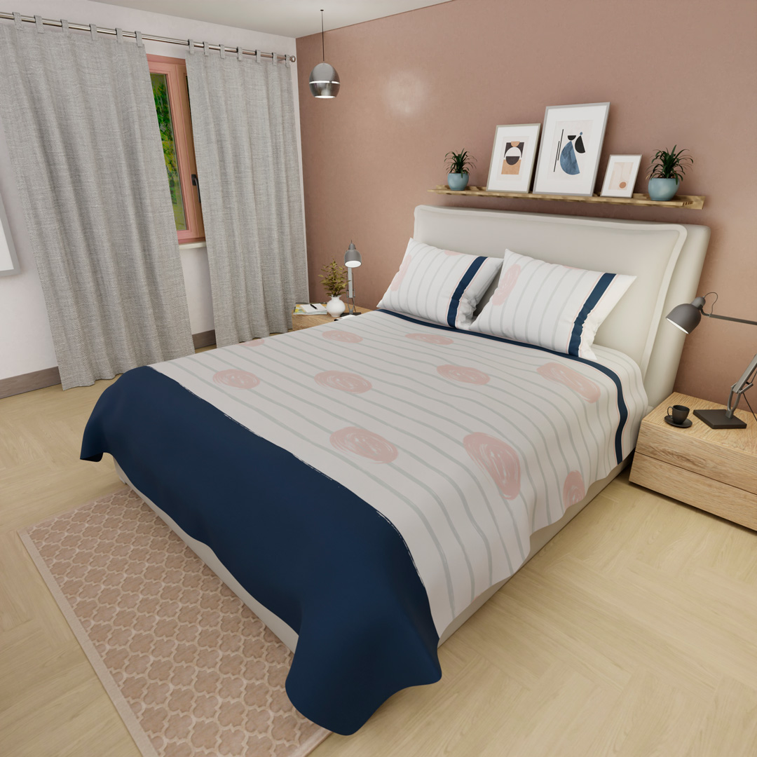 Juego De Sábanas Con Cortinas Ritmo Circular Azul