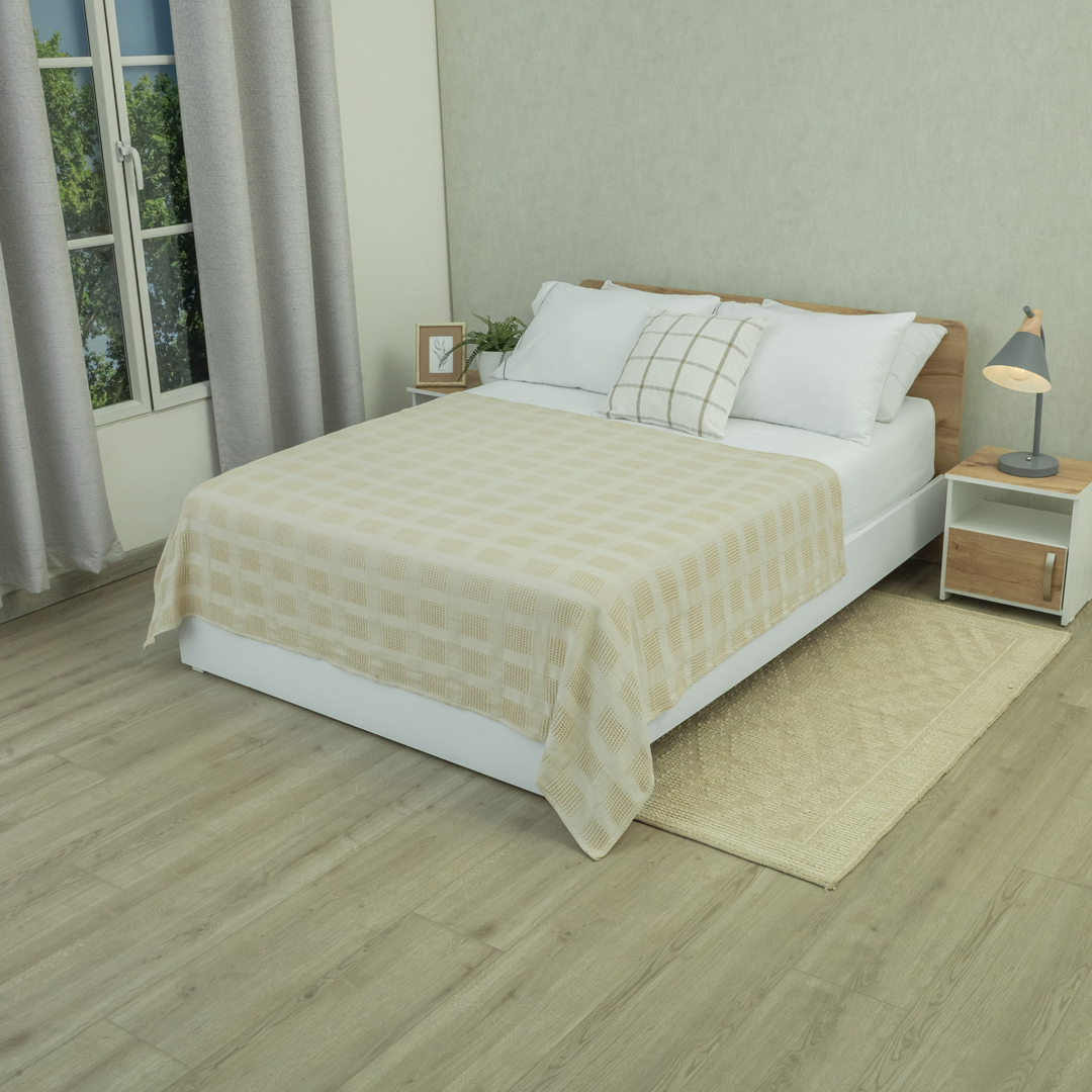 Gracias a la resistencia natural del algodón, esta sobrecama mantiene su forma y textura incluso tras múltiples lavadas, asegurando una larga vida útil. Su tamaño de 1.50 x 2.00 metros se adapta fácilmente a camas sencillas, semidobles o como complemento en camas más grandes.