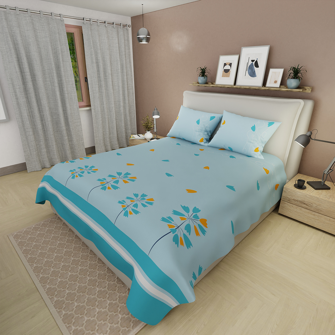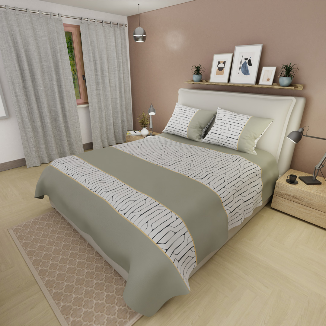 Cubrelecho Prensado tipo español Brunutti 180hilos Doble faz, Rombos Azules, Figuras verde